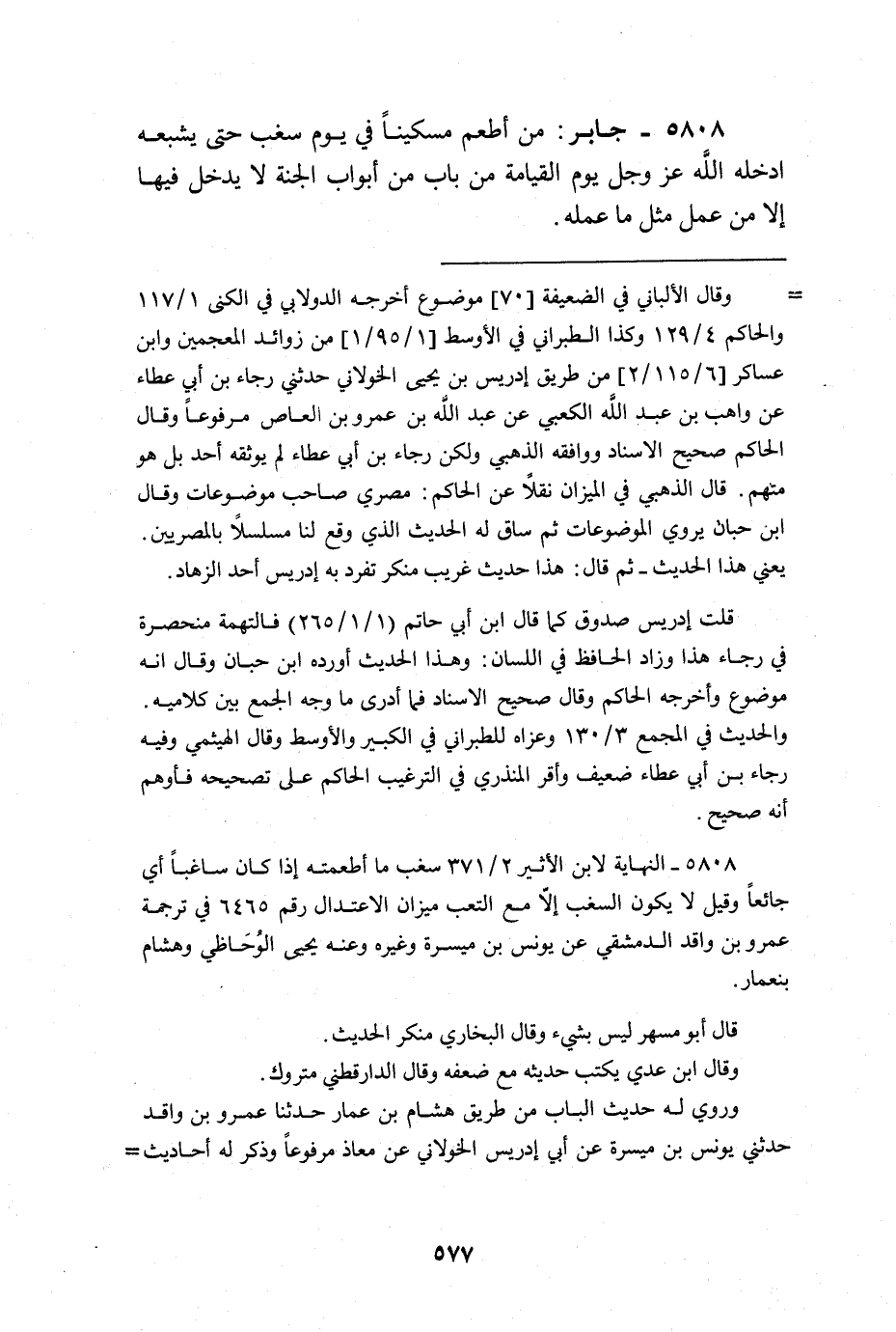 من أطْعم مِسْكينا فِي يَوْم سغب حَتَّى يشبعه أدخلهُ الله عز وَجل يَوْم الْقِيَامَة من بَاب من أَبْوَاب الْجنَّة لَا يدْخل فِيهَا إِلَّا من عمل مثل مَا علمه