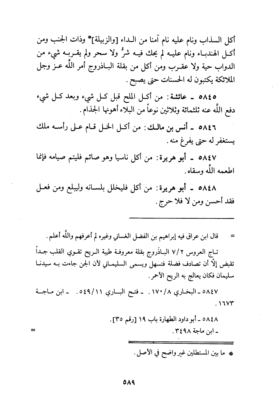 أكل السذاب ونام عَلَيْهِ نَام آمنا من الدَّاء والزبيلة وَذَات الْجنب وَمن أكل الهندباء ونام عَلَيْهِ لم يحك فِيهِ شَرّ وَلَا سحر وَلم يقربهُ شَيْء من الدَّوَابّ حَيَّة وَلَا عقرب وَمن أكل من بقلة الباذروج أَمر الله عز وَجل الْمَلَائِكَة يَكْتُبُونَ لَهُ الْحَسَنَات حَتَّى يصبح