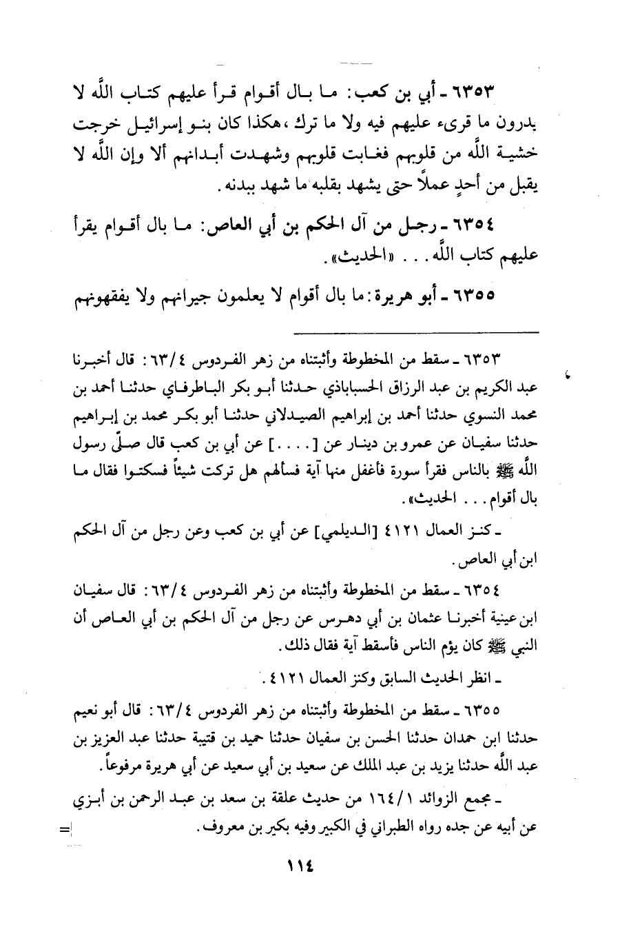 مَا بَال أَقوام قَرَأَ عَلَيْهِم كتاب الله لَا يَدْرُونَ مَا قرىء عَلَيْهِم فِيهِ وَلَا مَا ترك هَكَذَا كَانَ بَنو إِسْرَائِيل خرجت خشيَة الله من قُلُوبهم فغابت قُلُوبهم وَشهِدت أبدانهم أَلا وَإِن الله لَا يقبل من أحد عملا حَتَّى يشْهد بِقَلْبِه مَا شهد بِبدنِهِ