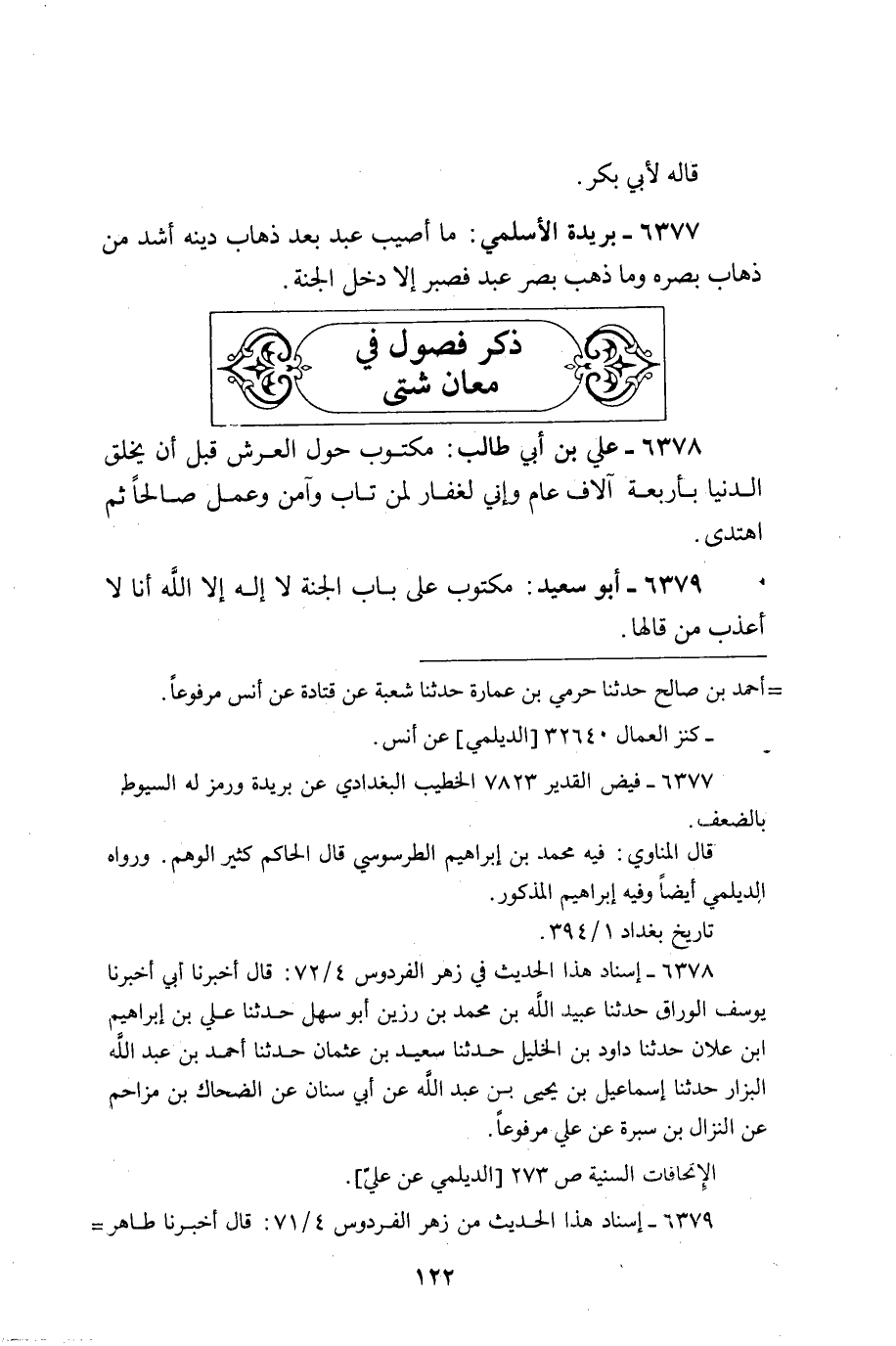 ذكر فُصُول فِي معَان شَتَّى