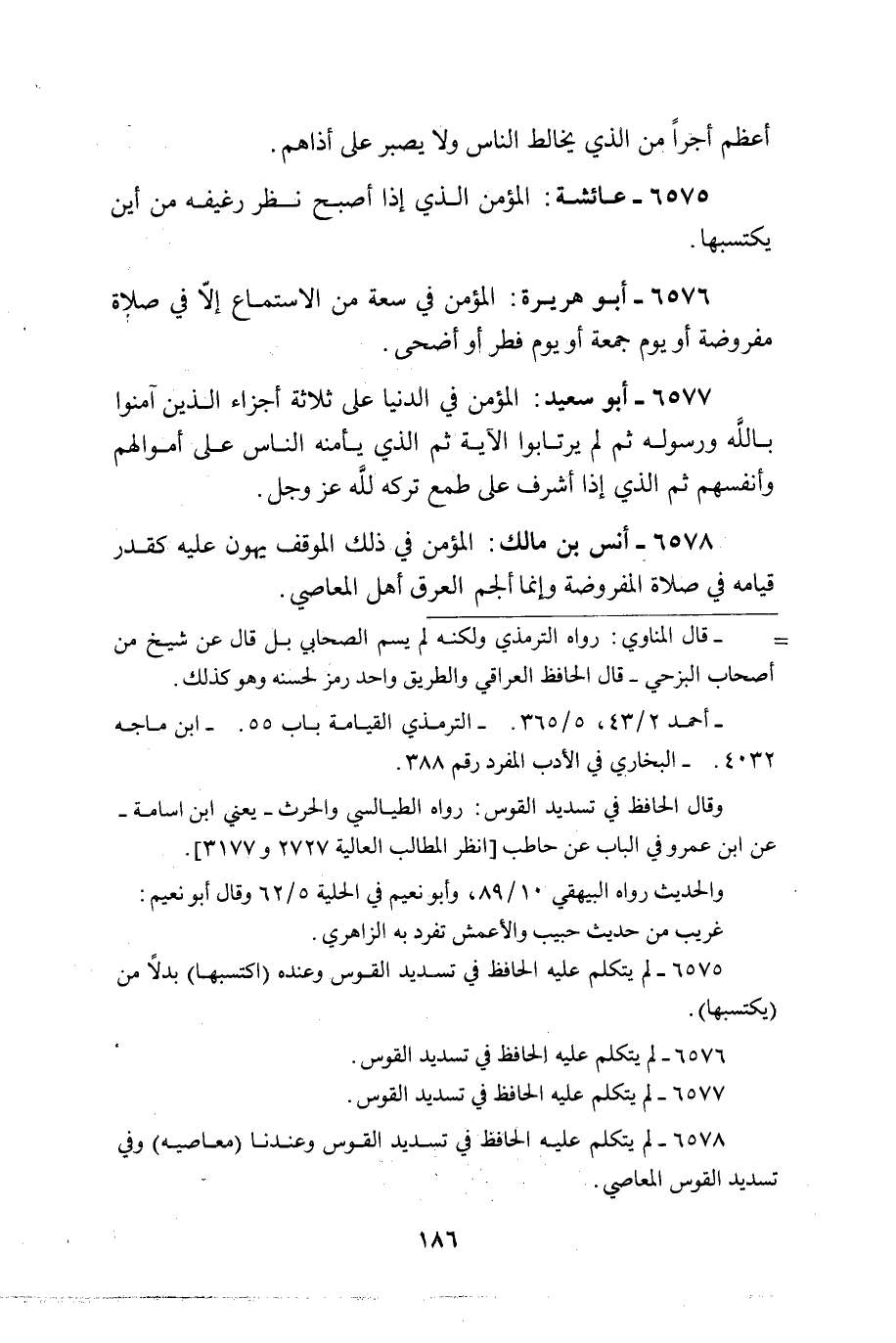 الْمُؤمن فِي الدُّنْيَا على ثَلَاثَة أَجزَاء {الَّذين آمنُوا بِاللَّه وَرَسُوله ثمَّ لم يرتابوا} الْآيَة ثمَّ الَّذِي يأمنه النَّاس على أَمْوَالهم وأنفسهم ثمَّ الَّذِي إِذا أشرف على طمع تَركه لله عز وَجل