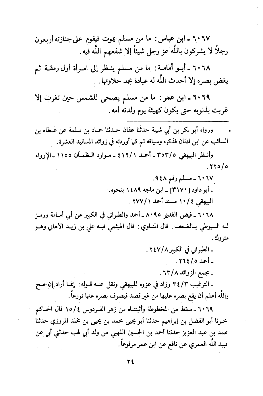 مَا من مُسلم يصحى للشمس حِين تغرب إِلَّا غربت بذنوبه حَتَّى يكون كَهَيئَةِ يَوْم وَلدته أمه
