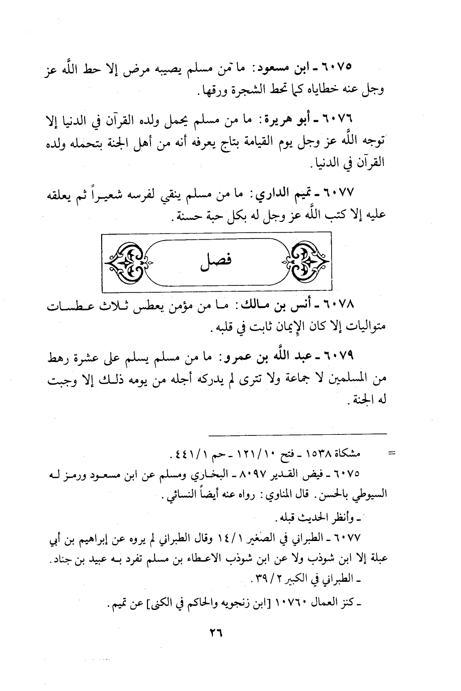 مَا من مُسلم يسلم على عشرَة رَهْط من الْمُسلمين لَا جمَاعَة وَلَا تترى لم يُدْرِكهُ أَجله من يَوْمه ذَلِك إِلَّا وَجَبت لَهُ الْجنَّة