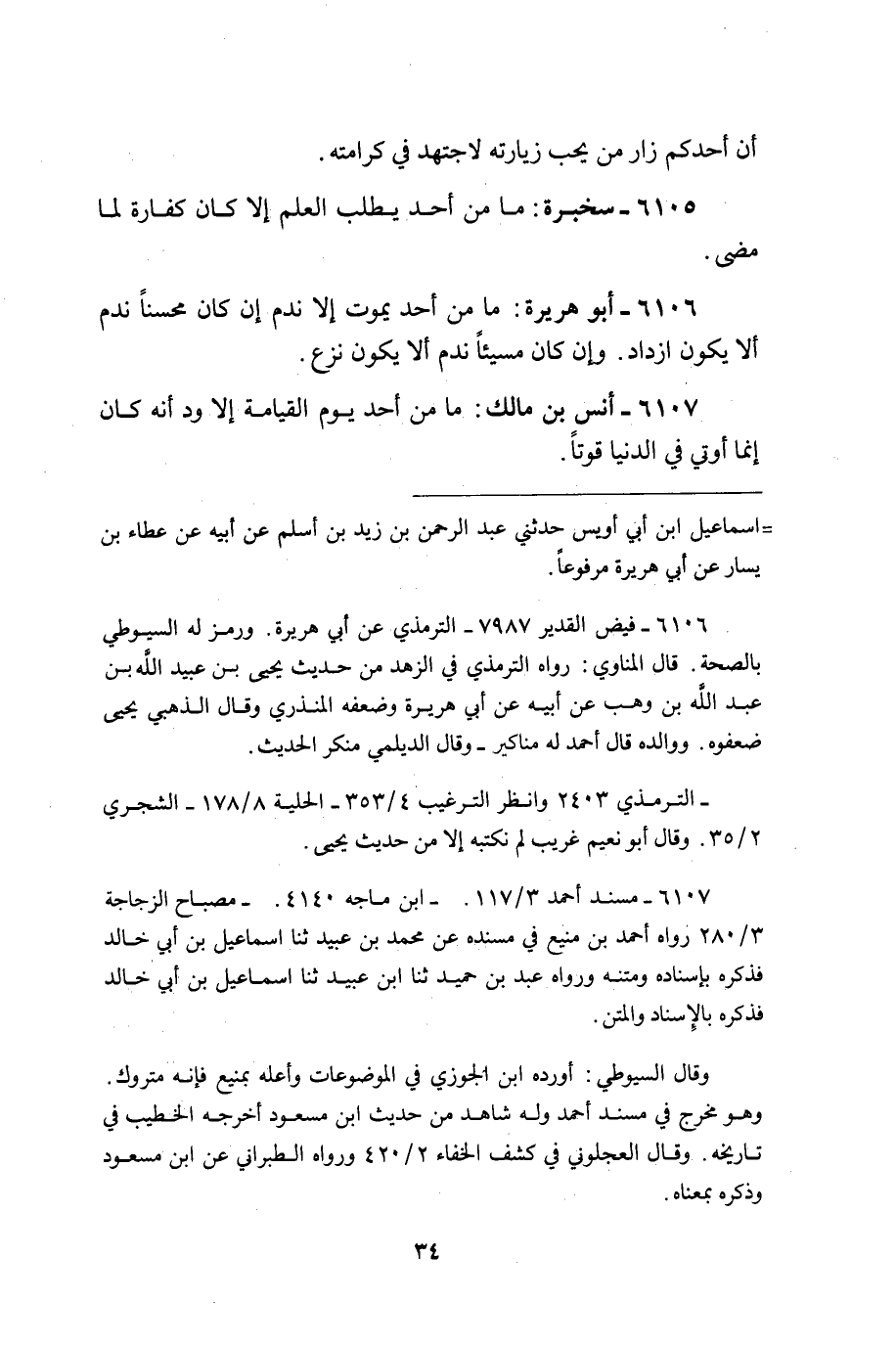 مَا من أحد يَمُوت إِلَّا نَدم إِن كَانَ محسنا نَدم أَلا يكون ازْدَادَ وَإِن كَانَ مسيئا نَدم أَلا يكون نزع