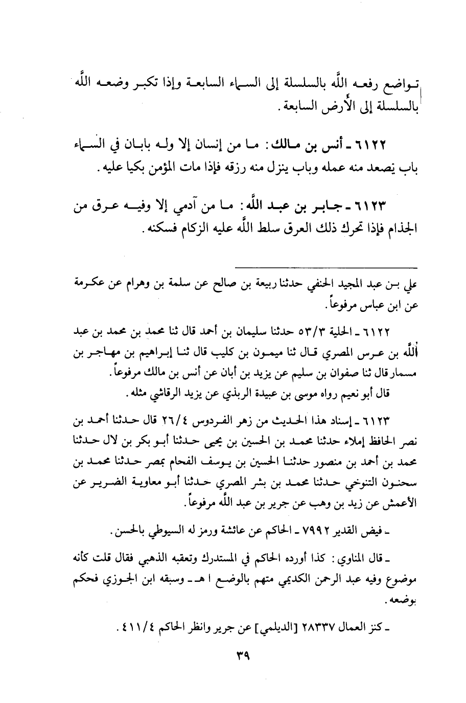 تواضع رَفعه الله بالسلسلة إِلَى السَّمَاء السَّابِعَة وَإِذا تكبر وَضعه الله بالسلسلة إِلَى الأَرْض السَّابِعَة