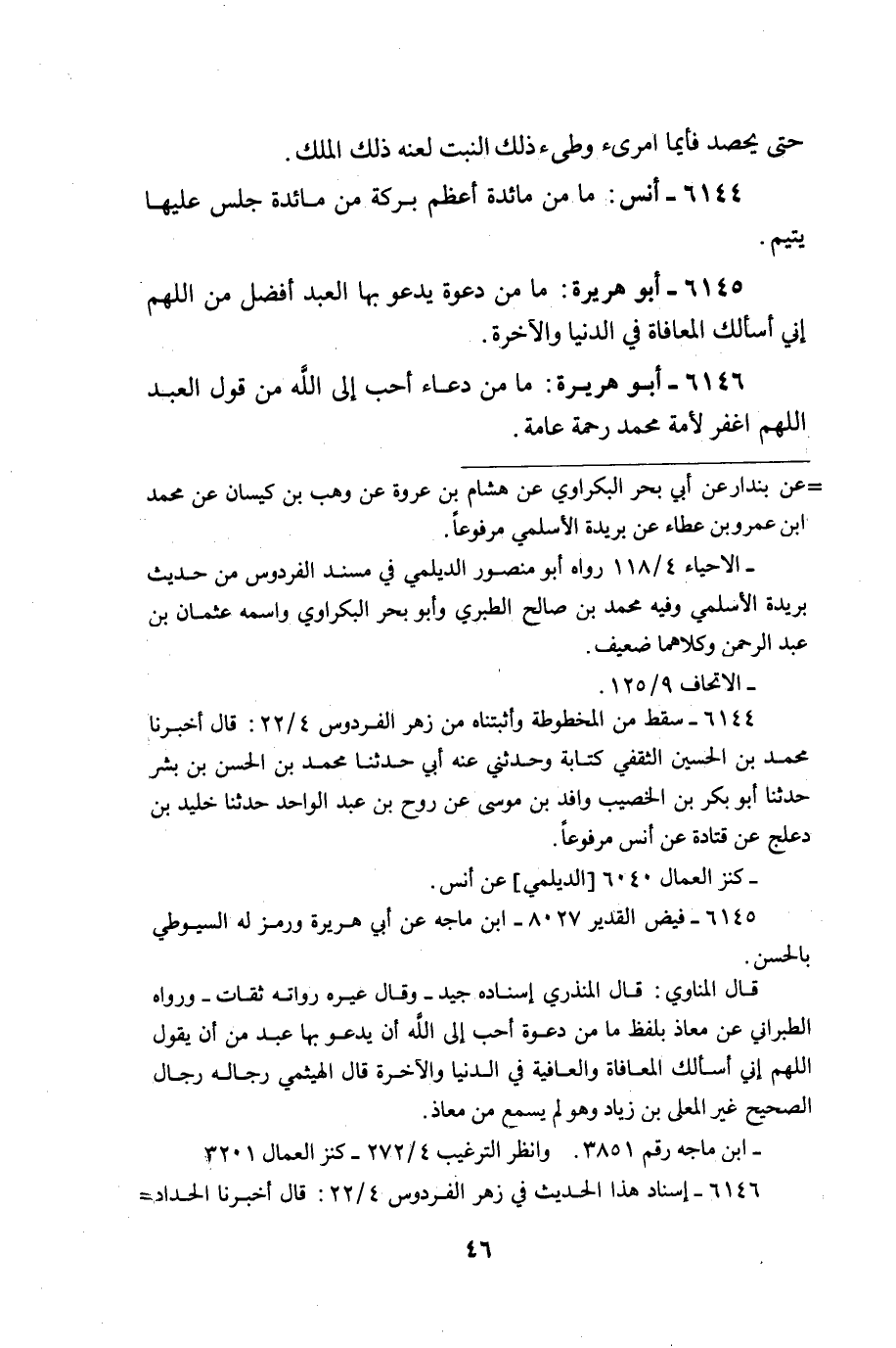 مَا من دَعْوَة يَدْعُو بهَا العَبْد أفضل من اللَّهُمَّ إِنِّي أَسأَلك المعافاة فِي الدُّنْيَا وَالْآخِرَة