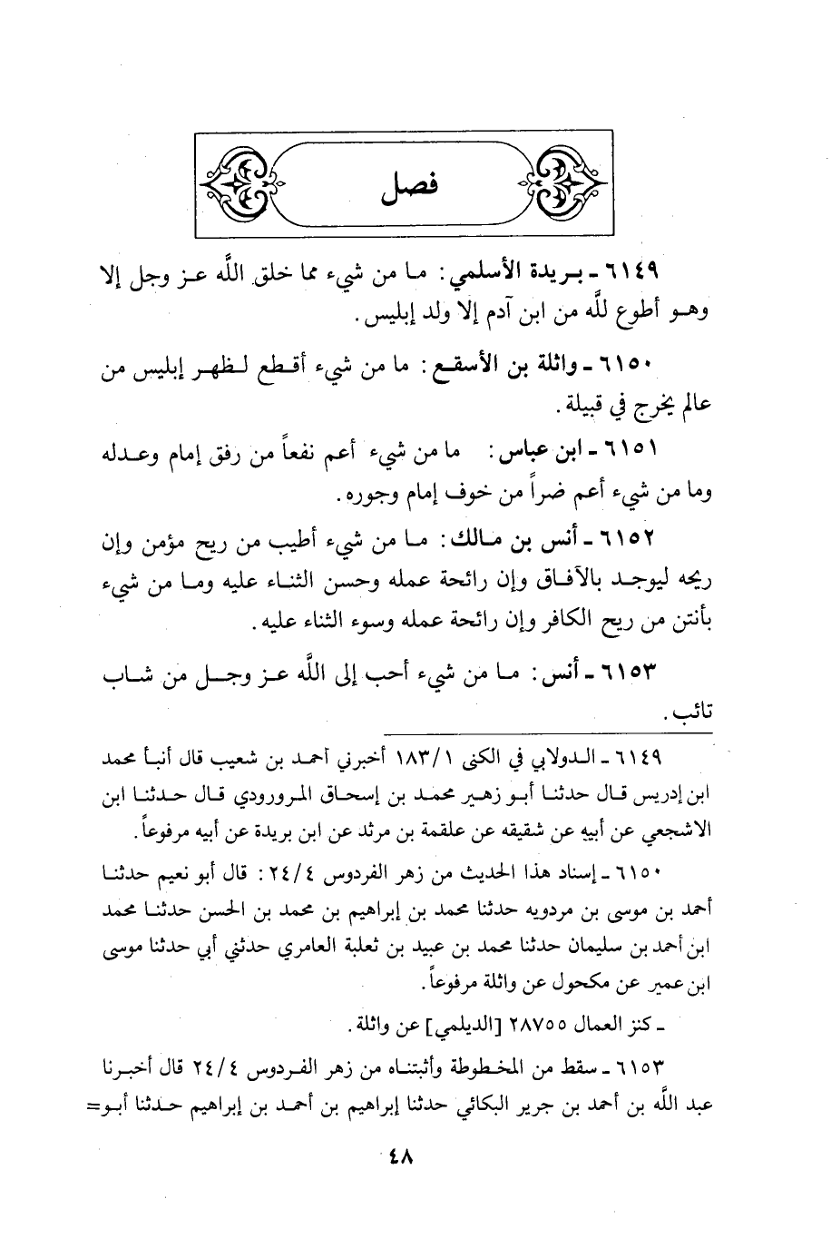 مَا من شَيْء أقطع لظهر إِبْلِيس من عَالم يخرج فِي قَبيلَة