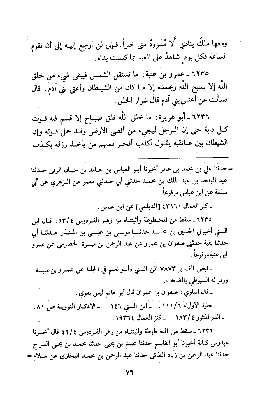 مَا تستقل الشَّمْس فَيبقى شَيْء من خلق الله إِلَّا يسبح الله وَيَحْمَدهُ إِلَّا مَا كَانَ من الشَّيْطَان وأعتى بني آدم قَالَ فَسَأَلت عَن أَعْتَى بني آدم قَالَ شرار الْخلق