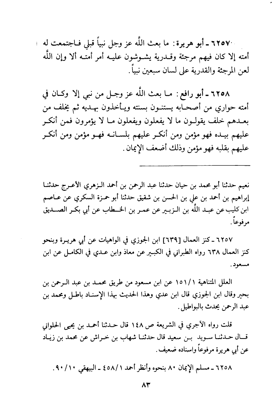 مَا بعث الله عز وَجل من نَبِي إِلَّا وَكَانَ فِي أمته حوارِي من أَصْحَابه يسننون بسنته وَيَأْخُذُونَ بهديه ثمَّ يخلف من بعدهمْ خلف يَقُولُونَ مَا لَا يَفْعَلُونَ ويفعلون مَا لَا يؤمرون فَمن أنكر عَلَيْهِم بِيَدِهِ فَهُوَ مُؤمن وَمن أنكر عَلَيْهِم بِلِسَانِهِ فَهُوَ مُؤمن وَمن أنكر عَلَيْهِم بِقَلْبِه فَهُوَ مُؤمن وَذَلِكَ أَضْعَف الْإِيمَان