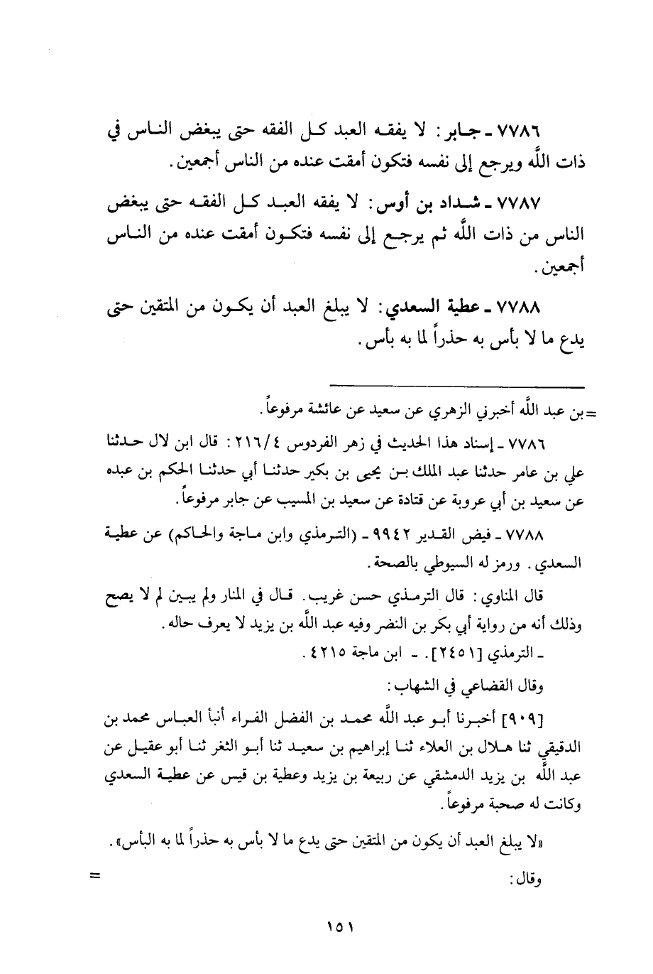 لَا يفقه العَبْد كل الْفِقْه حَتَّى يبغض النَّاس فِي ذَات الله وَيرجع إِلَى نَفسه فَتكون أمقت عِنْده من النَّاس أَجْمَعِينَ