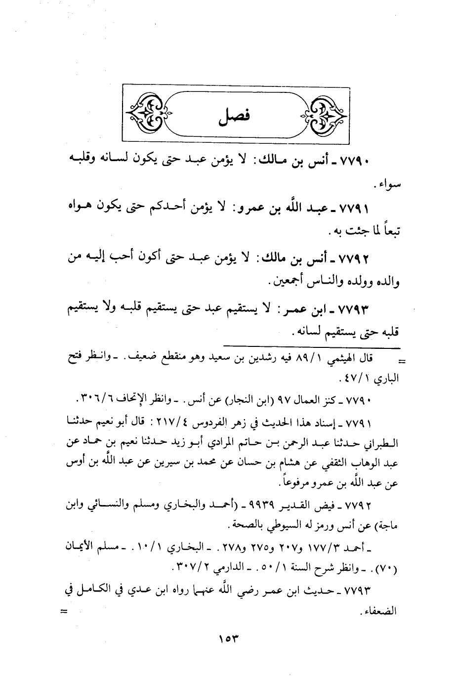 لَا يُؤمن عبد حَتَّى يكون لِسَانه وَقَلبه سَوَاء