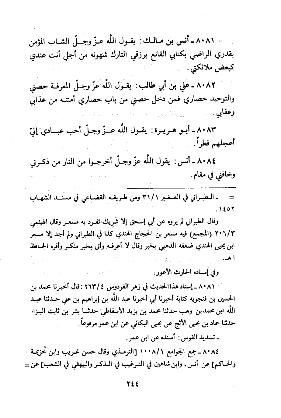 يَقُول الله عز وَجل الشَّاب الْمُؤمن بقدري الراضي بكتابي القانع برزقي التارك شَهْوَته من أَجلي أَنْت عِنْدِي كبعض ملائكتي