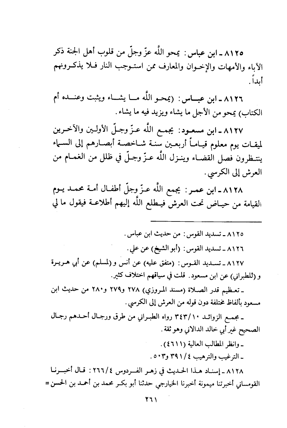 يجمع الله عز وَجل الْأَوَّلين والآخرين لميقات يَوْم مَعْلُوم فياما أَرْبَعِينَ سنة شاخصة أَبْصَارهم إِلَى السَّمَاء ينتظرون فصل الْقَضَاء وَينزل الله عز وَجل فِي ظلل من الْغَمَام من الْعَرْش إِلَى الْكُرْسِيّ