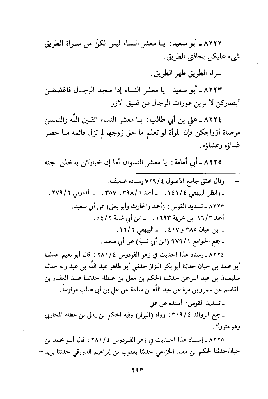 يَا معشر النِّسَاء لَيْسَ لَكِن من سراة الطَّرِيق شَيْء عليكن بحافتي الطَّرِيق