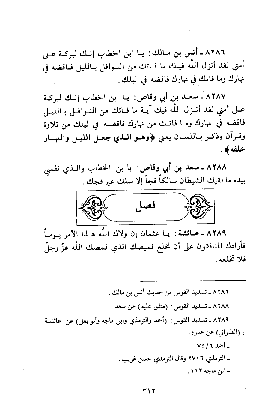 8288 - سعد بن أبي وَقاص يَا أبن الْخطاب وَالَّذِي نَفسِي بِيَدِهِ مَا لقيك الشَّيْطَان سالكا فجا إِلَّا سلك غير فجك