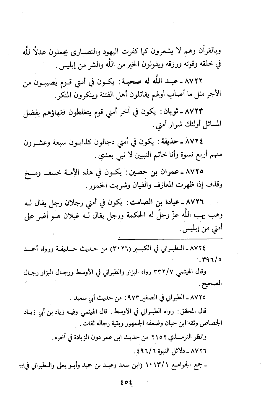 يكون فِي أمتِي دجالون كذابون سَبْعَة وَعِشْرُونَ مِنْهُم أَربع نسْوَة وَأَنا خَاتم النَّبِيين لَا نَبِي بعدِي