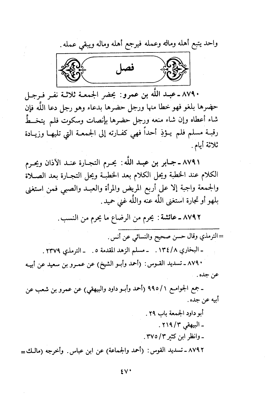 يحرم التِّجَارَة عِنْد الآذان وَيحرم الْكَلَام عِنْد الْخطْبَة وَيحل الْكَلَام بعد الْخطْبَة وَيحل التِّجَارَة بعد الصَّلَاة وَالْجُمُعَة وَاجِبَة إِلَّا على أَربع الْمَرِيض وَالْمَرْأَة وَالْعَبْد وَالصَّبِيّ فَمن اسْتغنى بلهو أَو تِجَارَة اسْتغنى الله عَنهُ وَالله غَنِي حميد