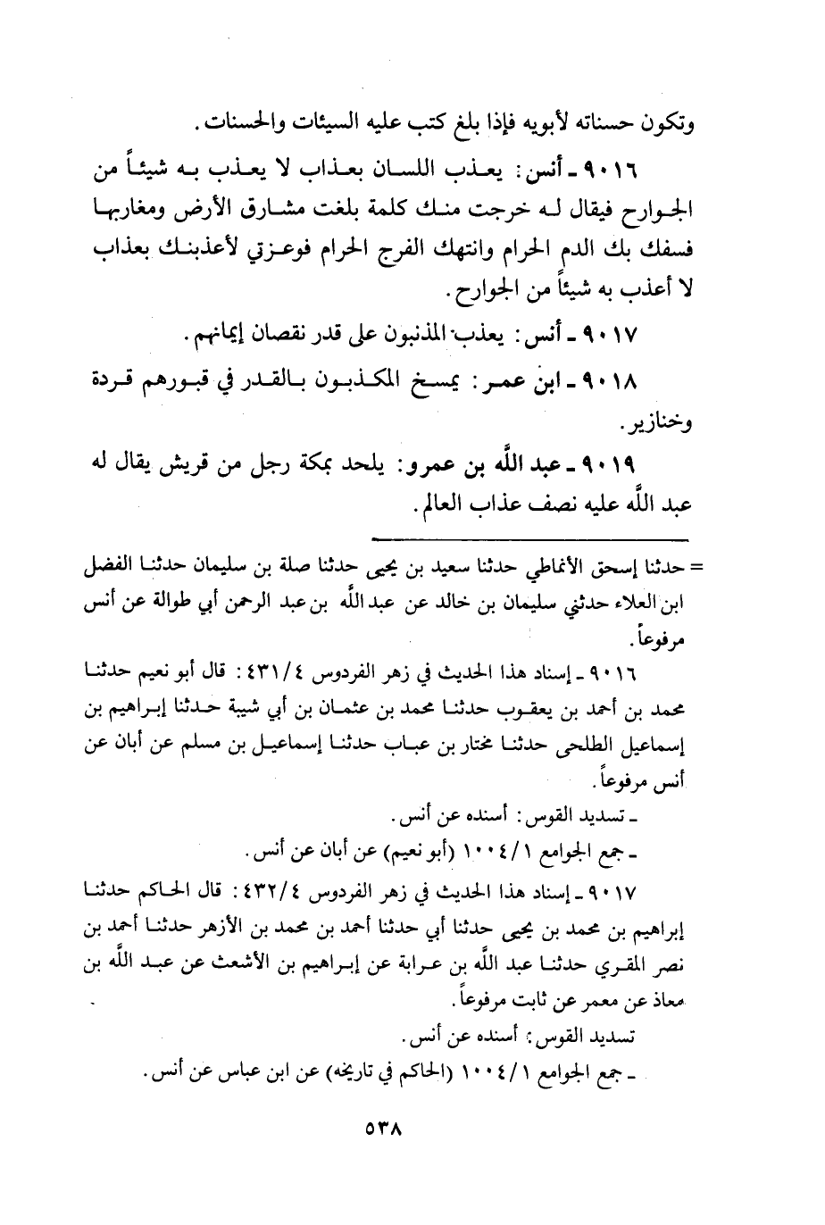 يعذب المذنبون على قدر نُقْصَان إِيمَانهم