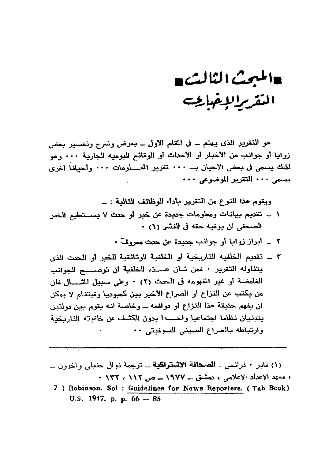 1 فابر، فرانس: الصحافة الاشتراكية، ترجمة: نوال حنبلي وآخرون "معهد الإعداد الإعلامي" دمشق، 1977، ص112، 132.