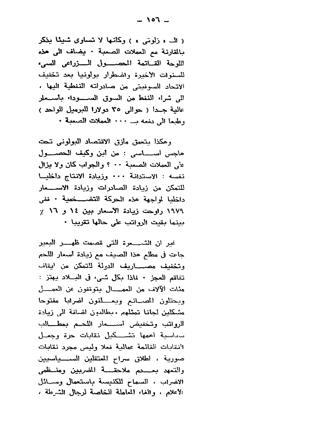 الـ"زلوتي" وكأنها لا تساوي شيئًا يذكر بالمقارنة مع العملات الصعبة. يضاف إلى هذه اللوحة القاتمة المحصول الزراعي السيئ للسنوات الأخيرة، واضطرار بولونيا بعد تخفيف الاتحاد السوفيتي من صادراته النفطية إليها، إلى شراء النفط من السوق السوداء بأسعار عالية جدًّا "حوالي 35 دولارًا للبرميل الواحد" وطبعًا إلي دفعه بـ"العملات الصعبة".