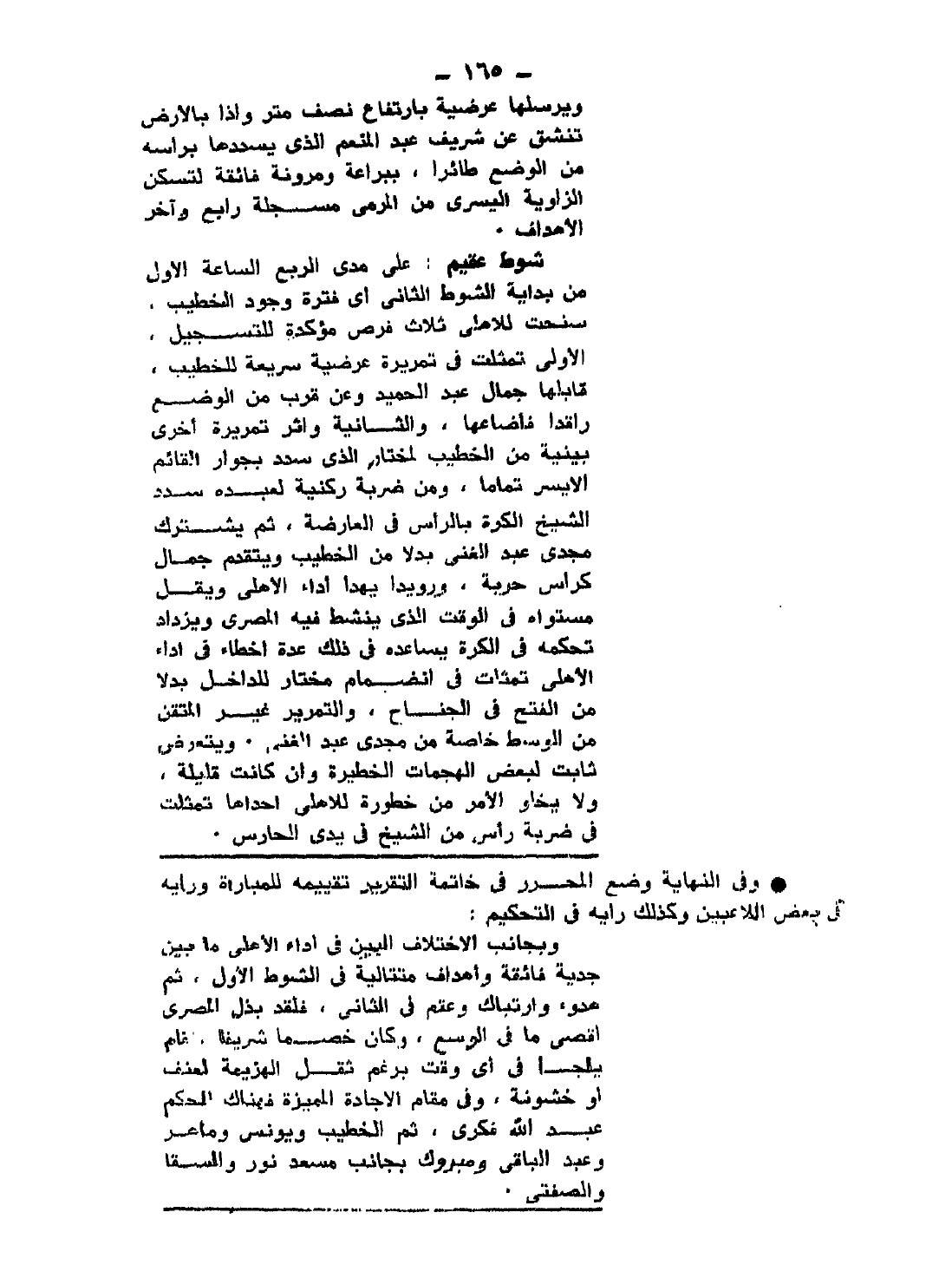 - وفي النهاية وضع المحرر في خاتمة التقرير تقييمه للمباراة، ورأيه في بعض اللاعبين، وكذلك رأيه في التحكيم: