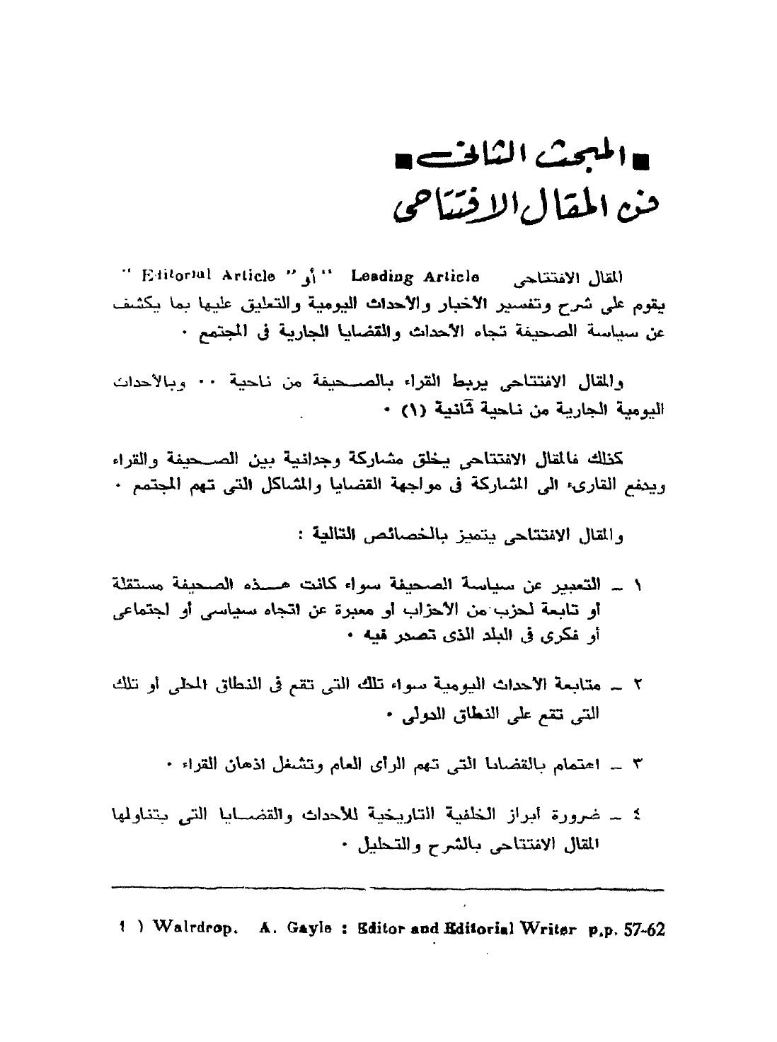 والمقال الافتتاحي يربط القراء بالصحيفة من ناحية.. وبالأحداث اليومية الجارية من ناحية ثانية1.