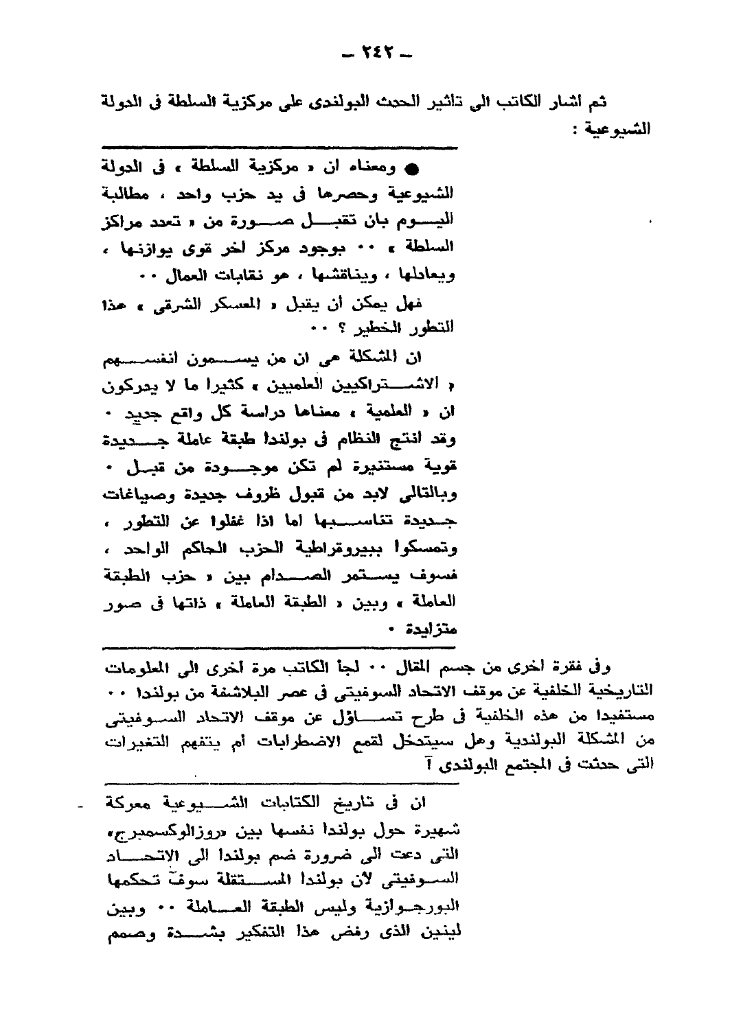 ثم أشار الكاتب إلى تأثير الحدث البولندي على مركزية السلطة في الدولة الشيوعية: