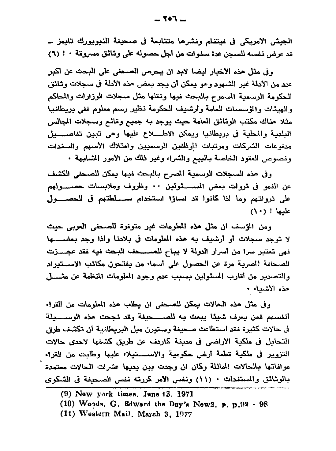 ومن المؤسف أن مثل هذه المعلومات غير متوفرة للصحفي العربي؛ حيث لا توجد سجلات أو أرشيف به هذه المعلومات في بلادنا، وإذا وجد بعضها فهي تعتبر سرًّا من أسرار الدولة لا يباح للصحف البحث فيه، فقد عجزت الصحافة المصرية مرة عن الحصول على أسماء مَن يفتحون مكاتب الاستيراد والتصدير من أقارب المسئولين؛ بسبب عدم وجود المعلومات المنظمة عن مثل هذه الأشياء.