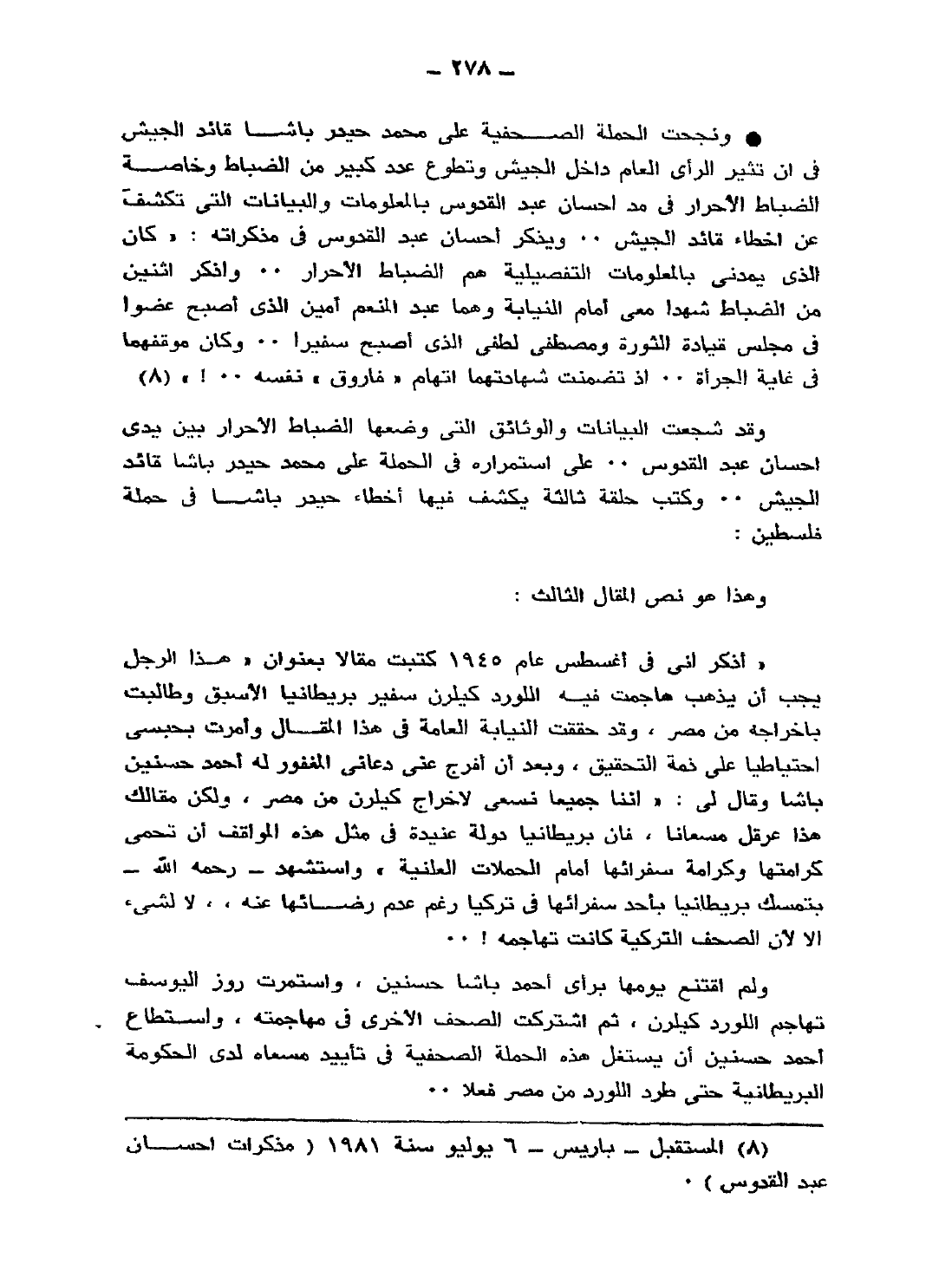 1 المستقبل - باريس - 6 يوليو سنة 1981 "مذكرات إحسان عبد القدوس".