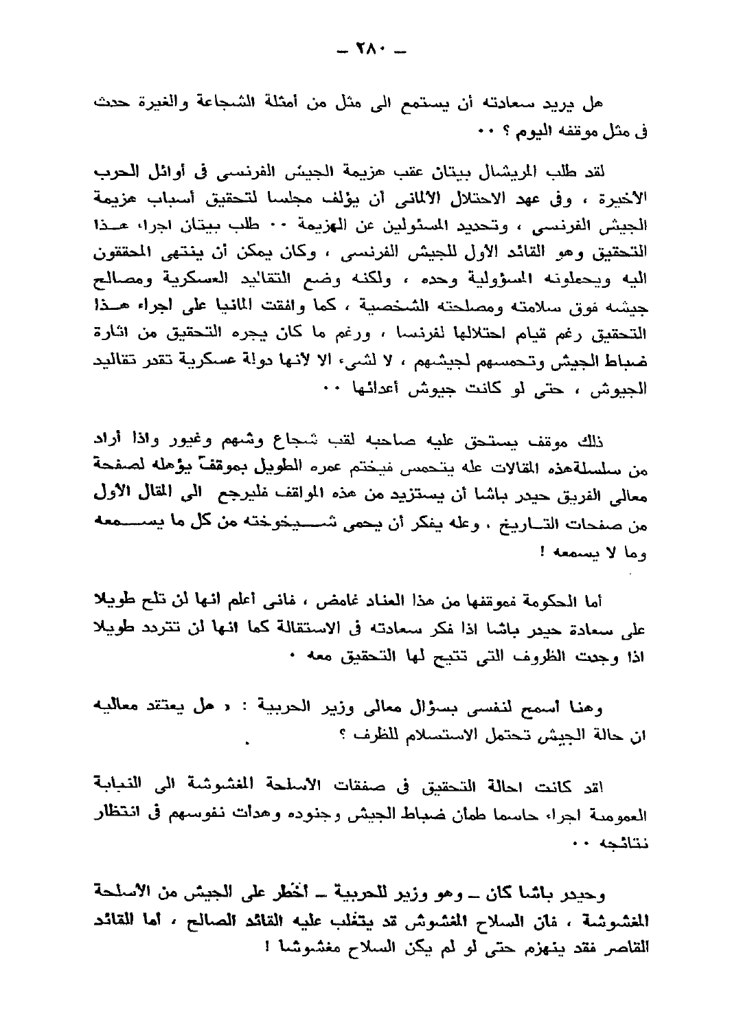 وهنا أسمح لنفسي بسؤال معالي وزير الحربية: هل يعتقد معاليه أن حالة الجيش تحتمل الاستسلام للظرف؟
