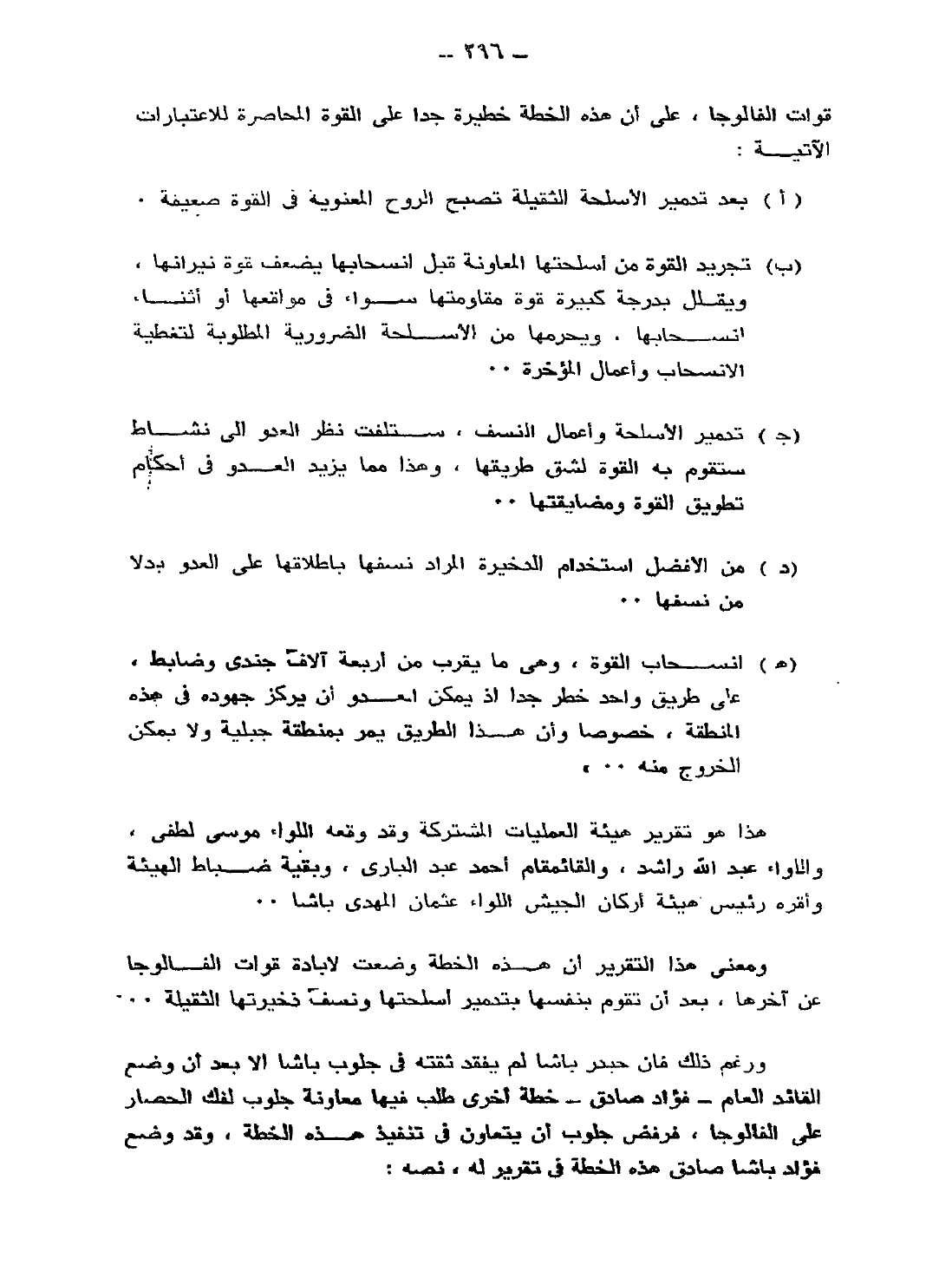 هذا هو تقرير هيئة العمليات المشتركة، وقد وقعه اللواء موسى لطفي، واللواء عبد الله راشد، والقائمقام أحمد عبد الباري، وبقية ضباط الهيئة، وأقره رئيس هيئة أركان الجيش اللواء عثمان المهدي باشا..