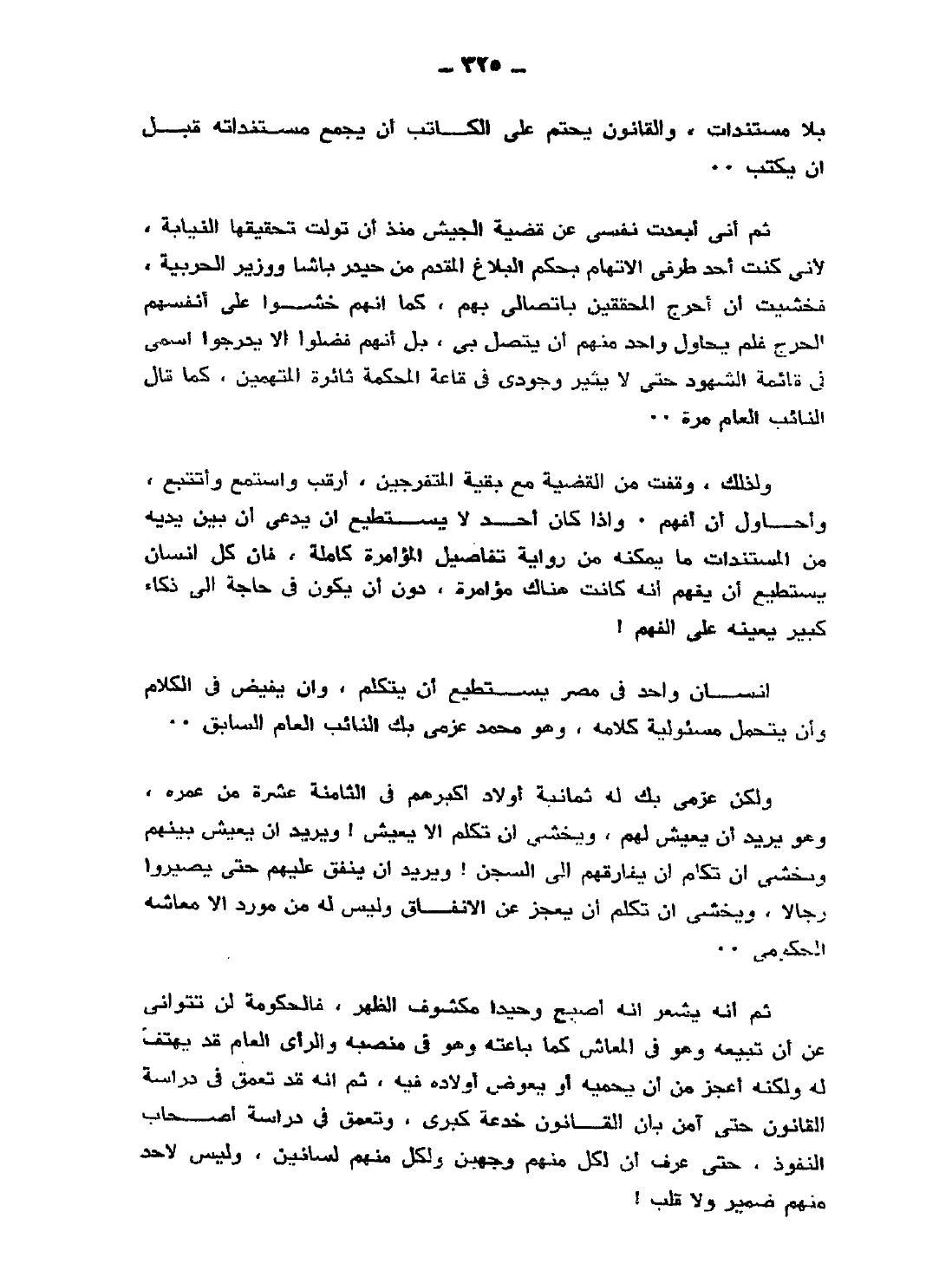 إنسان واحد في مصر يستطيع أن يتكلم، وأن يفيض في الكلام، وأن يتحمل مسئولية كلامه، وهو محمد عزمي بك النائب العام السابق..