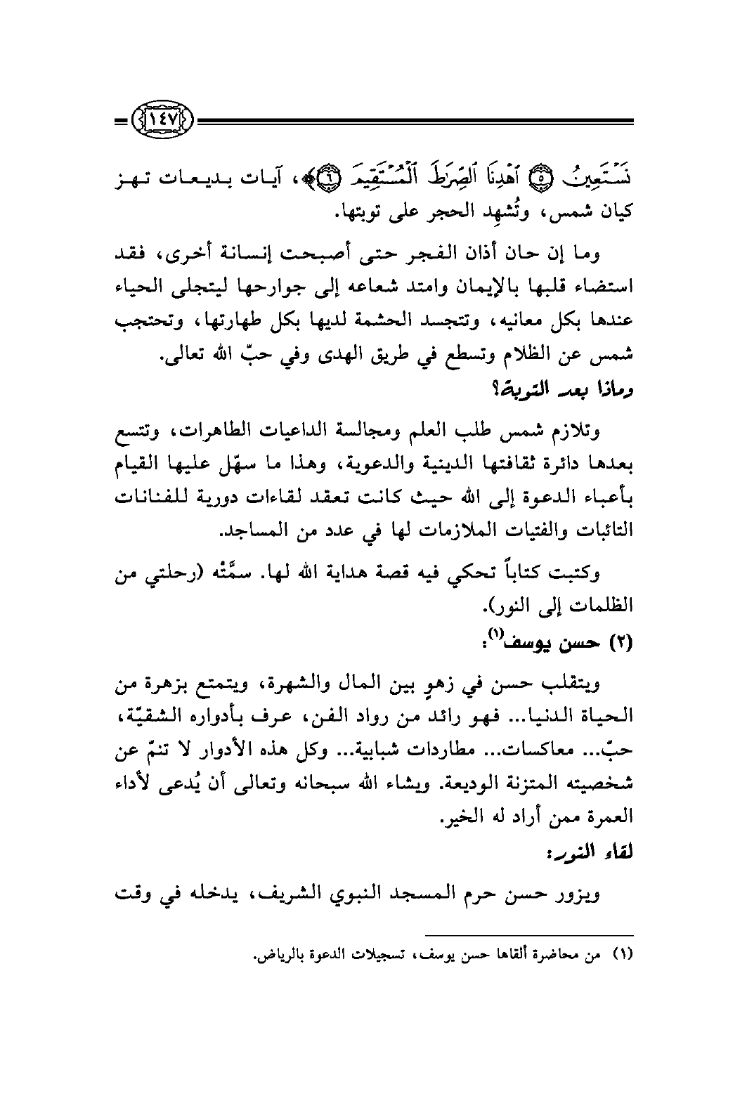 (¬1) من محاضرة ألقاها حسن يوسف، تسجيلات الدعوة بالرياض.