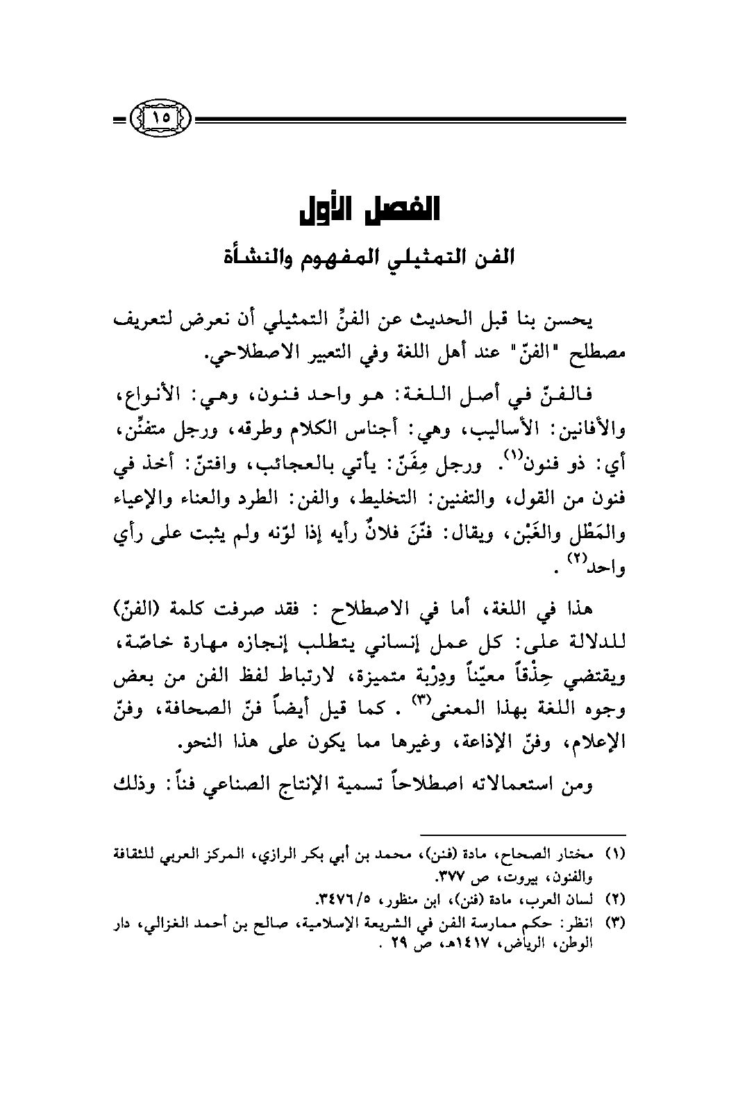 (¬3) انظر: حكم ممارسة الفن في الشريعة الإسلامية، صالح بن أحمد الغزالي، دار الوطن، الرياض، 1417هـ، ص 29.