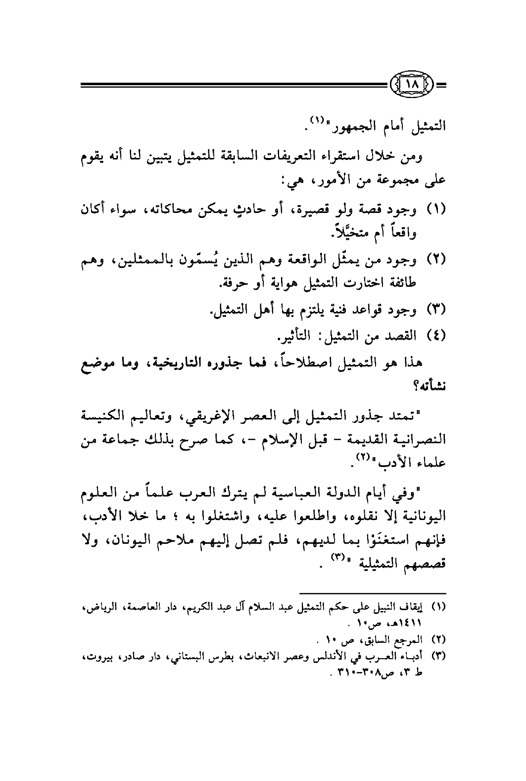 (¬1) إيقاف النبيل على حكم التمثيل عبد السلام آل عبد الكريم، دار العاصمة، الرياض، 1411هـ، ص10.