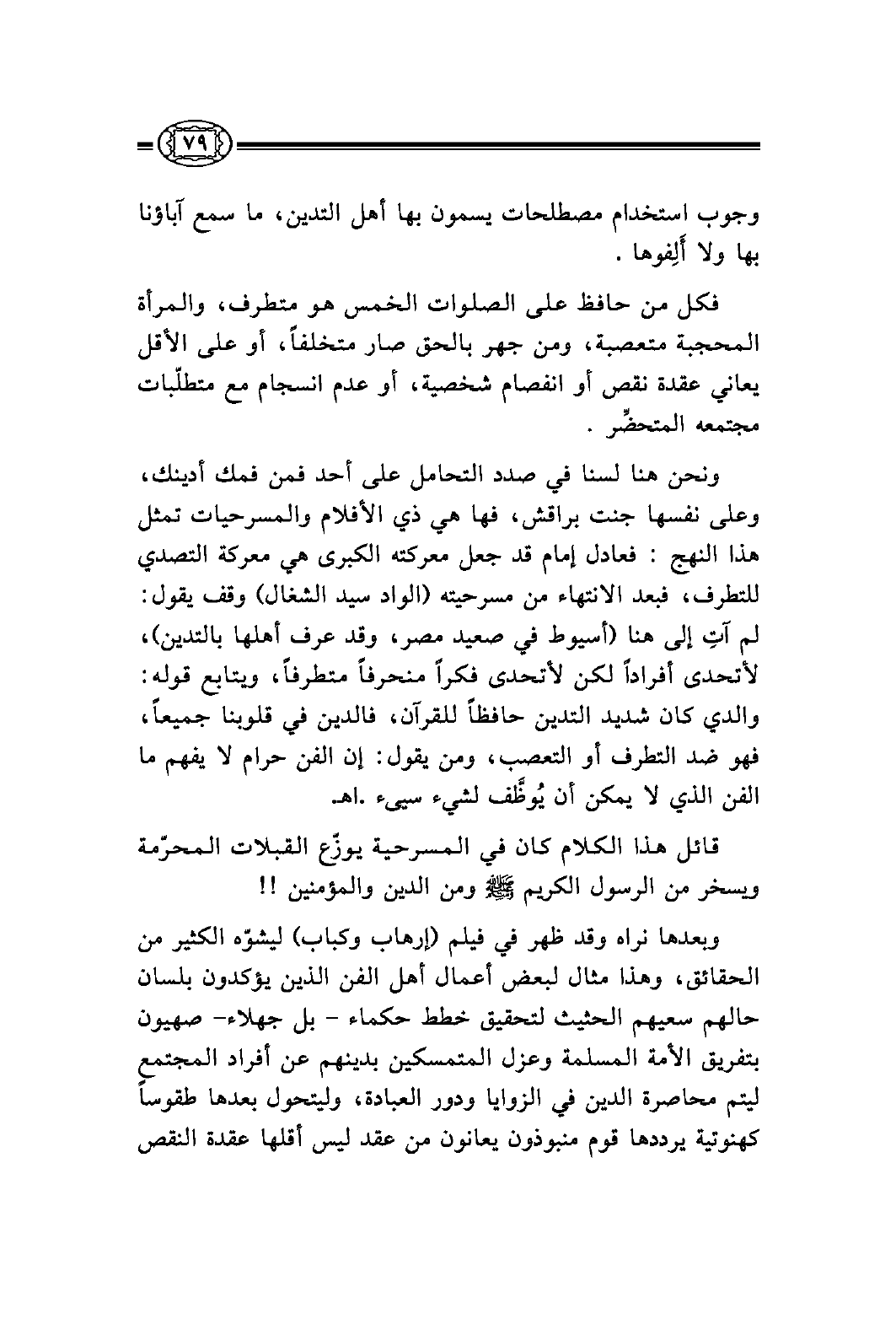 قائل هذا الكلام كان في المسرحية يوزّع القبلات المحرّمة ويسخر من الرسول الكريم صلى الله عليه وسلم ومن الدين والمؤمنين!!