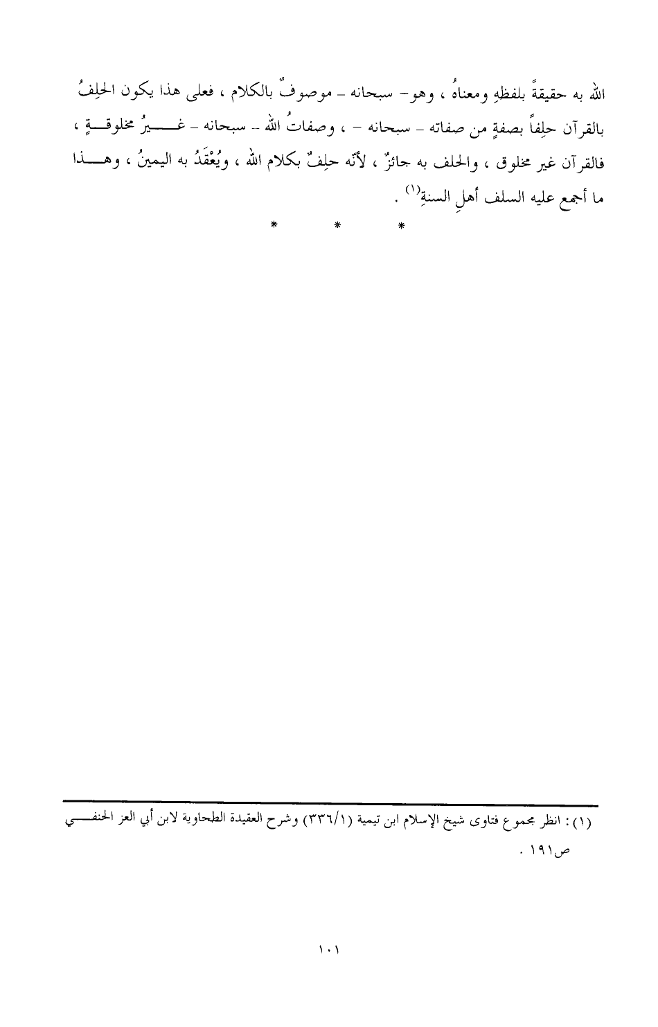 (¬1) انظر مجموع فتاوى شيخ الإسلام ابن تيمية (1/ 336) وشرح العقيدة الطحاوية لابن أبي العز الحنفي ص 191.