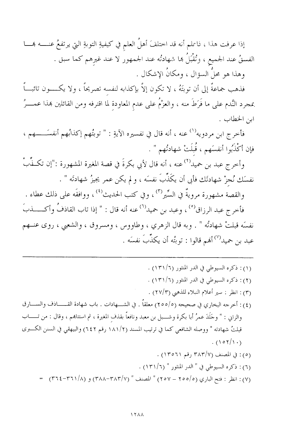(¬4) أخرجه البخاري في صحيحه (5/ 255) معلقا. في الشهادات. باب شهادة القاذف والسارق والزاني: " وجلد عمر أبا بكرة وشبل بن معبد ونافعا بقذف المغيرة، ثم استتابهم، وقال: من تاب قبلت شهادته" ووصله الشافعي كما في ترتيب المسند (2/ 181 رقم 642) والبيهقي في السنن الكبرى (10/ 152)