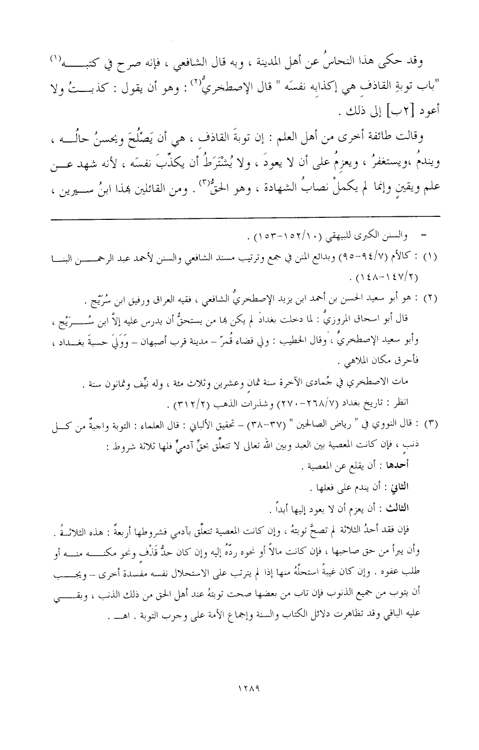 (1):. (2):. (3): قال النووي في "رياض الصالحين" (37 - 38) - تحقيق الألباني: قال العلماء: التوبة واجبة من كل ذنب، فإن كانت المعصية بين العبد وبين الله تعالى لا تتعلق بحق آدمي فلها ثلاثة شروط: