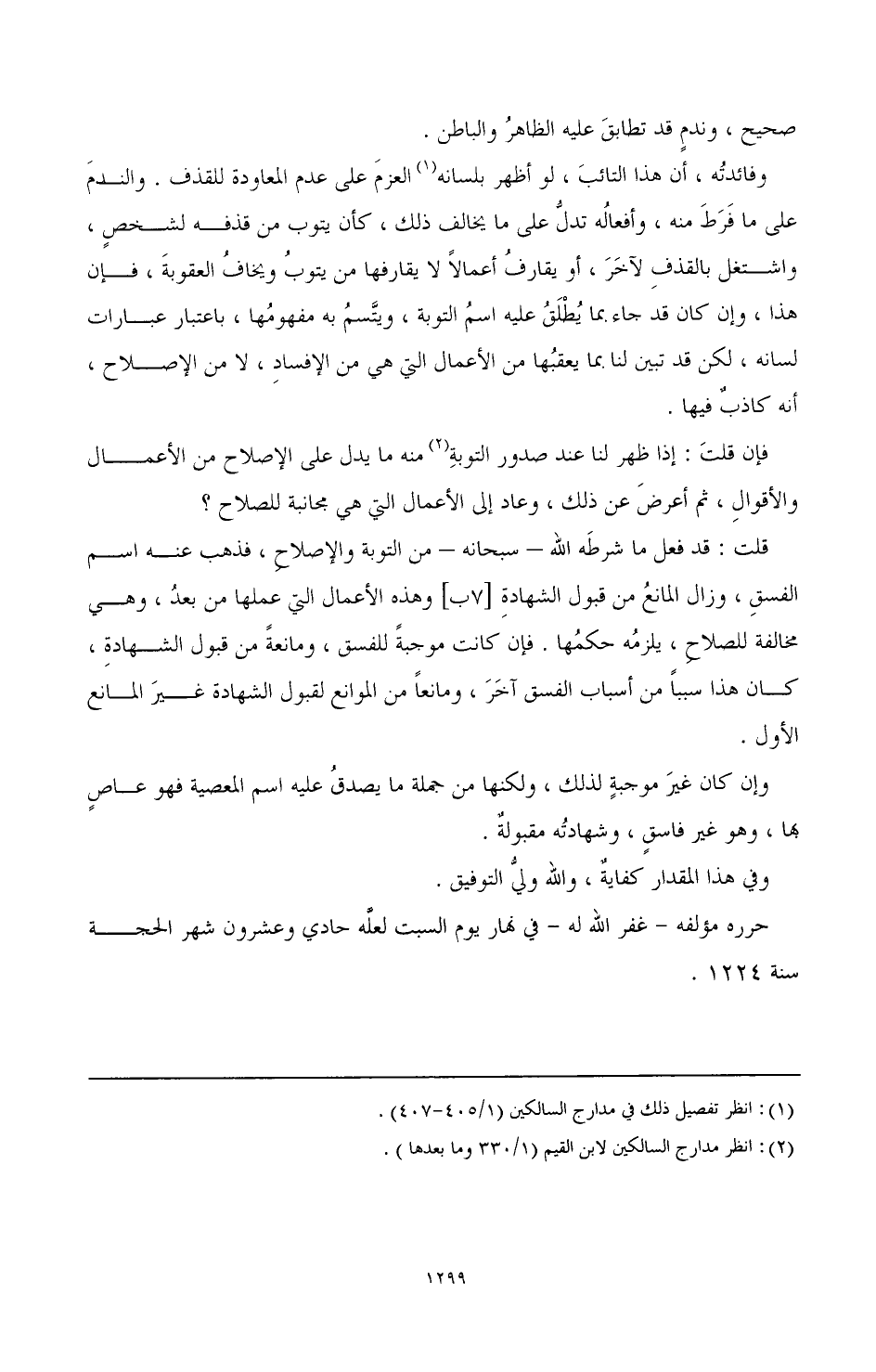 (¬2) انظر مدارج السالكين لابن القيم (1/ 330 وما بعدها)