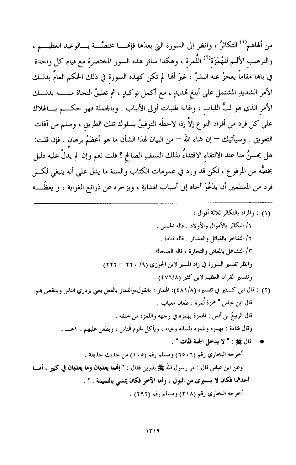 (¬2) قال ابن كثير في تفسيره (8/ 481): الهماز: بالقول، واللماز بالفعل يعني يزدري الناس وينتقص هم. قال ابن عباس " همزة لمزة: طعان معياب.