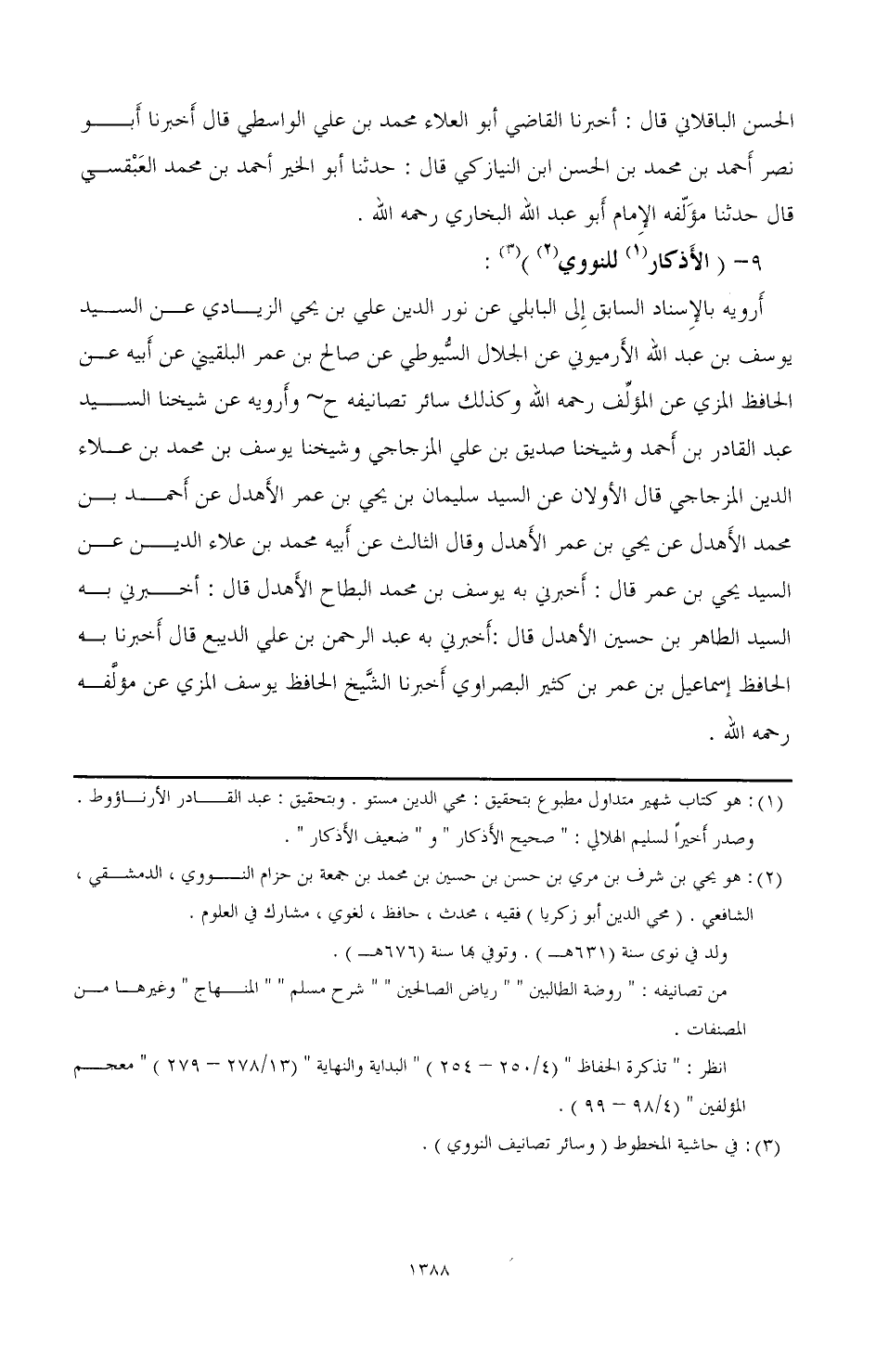 (¬1) هو كتاب شهير متداول مطبوع بتحقيق: محط الدين مستو. وبتحقيق: عبد القادر الأرناؤوطي. وصدر أخير السليم الهلالي: " صحيح الأذكار " و"ضعيف الأذكار"