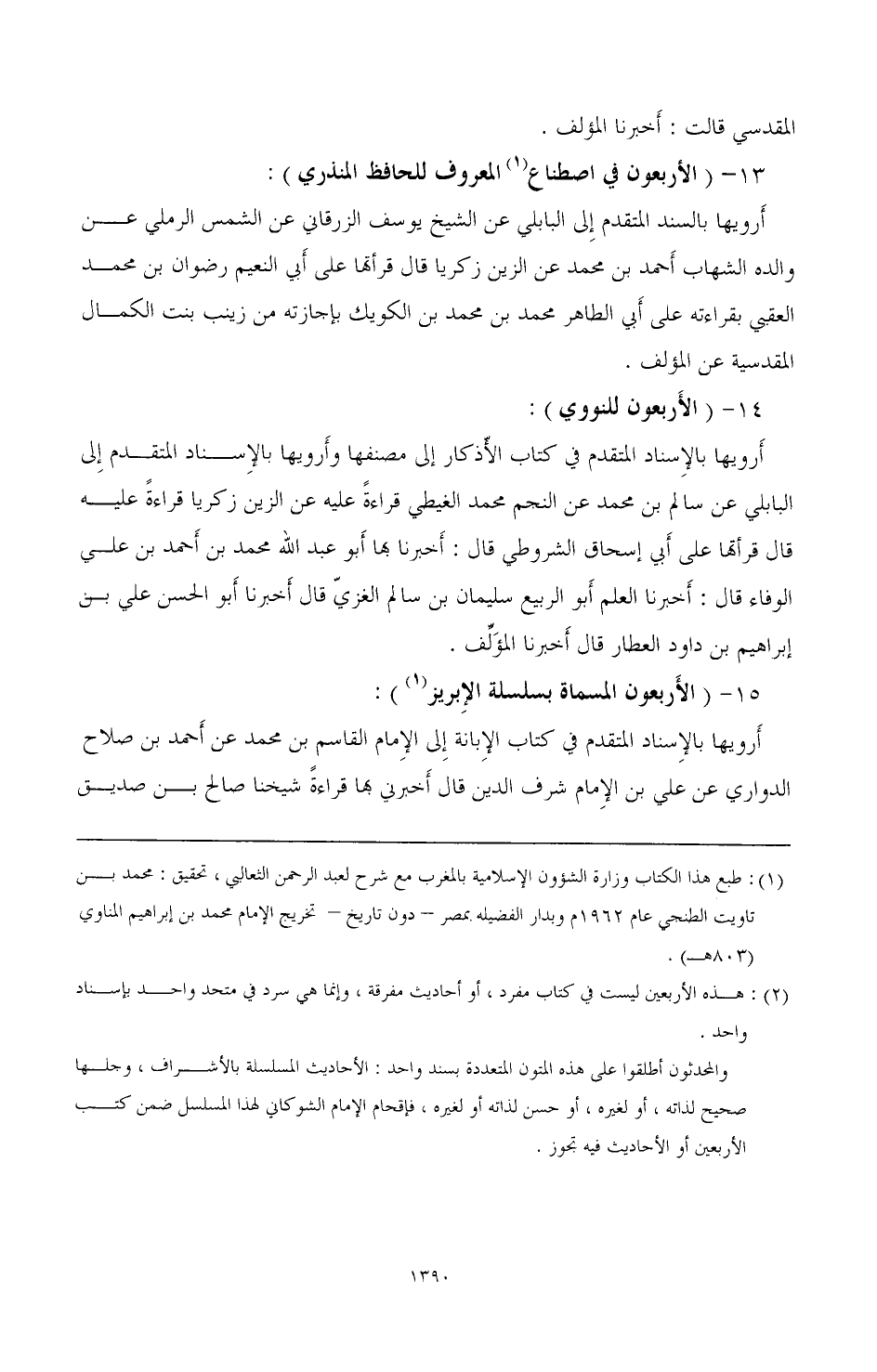 13 - (الأربعون في اصطناع (¬1) المعروف للحافظ المنذري):