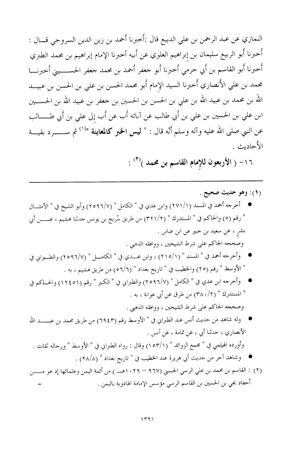 16 - (الأربعون للإمام القاسم بن محمد) (¬2):
