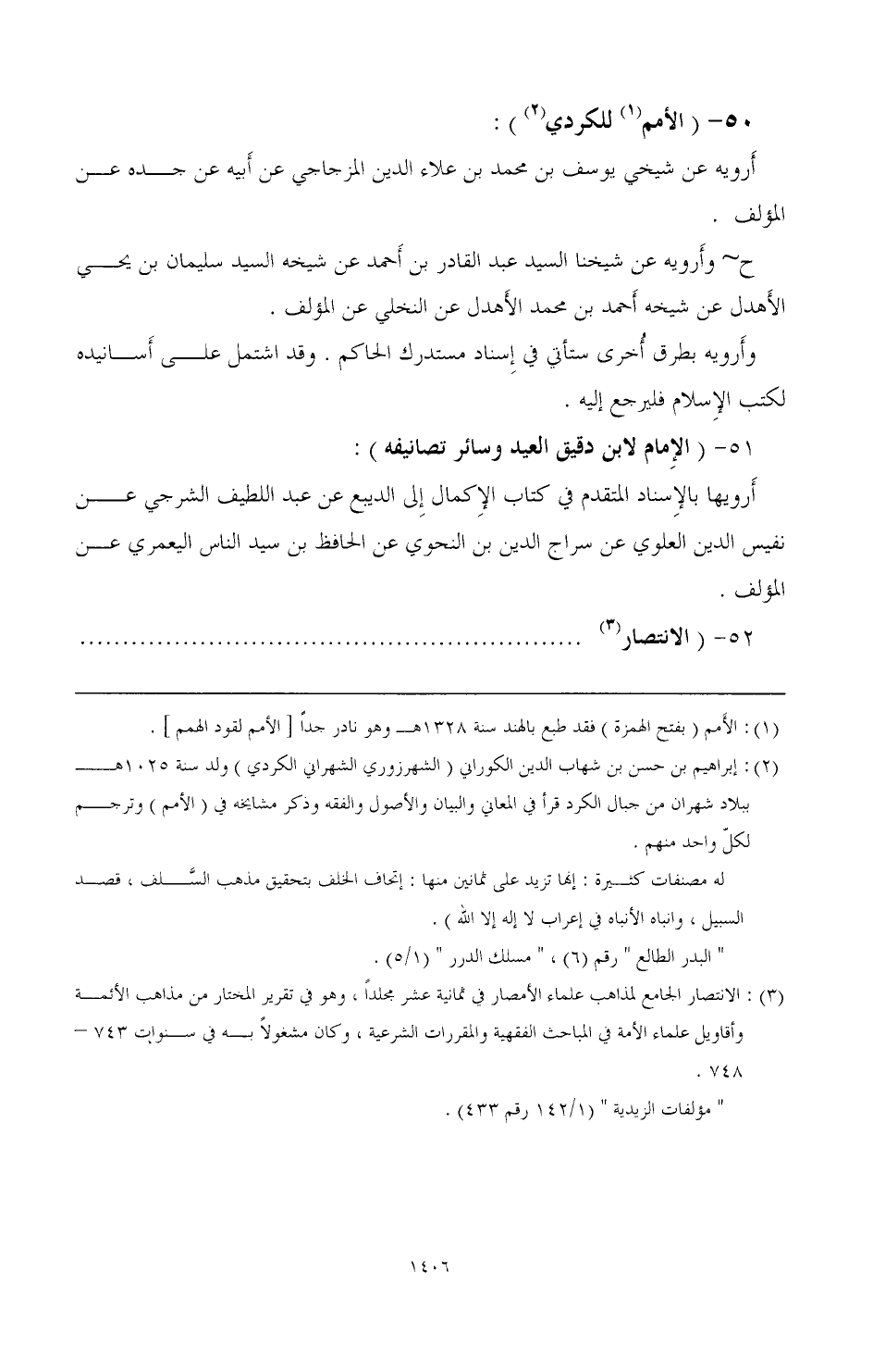 (¬2) إبراهيم بن حسن بن شهاب الدين الكورايى (الشهرزوري الشهراني الكردي) ولد سنة 1025 هـ ببلاد شهران من جبال الكرد قرأ في المعاني والبيان والأصول والفقه وذكر مشايخه في (الأمم) وترجم لكل واحد منهم.
