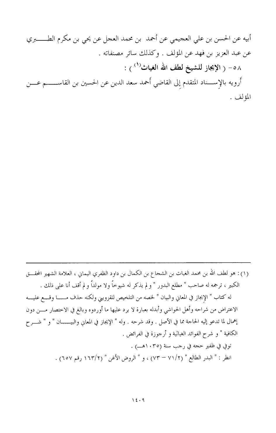 58 - (الإيجاز للشيخ لطف الله الغياث (¬1):