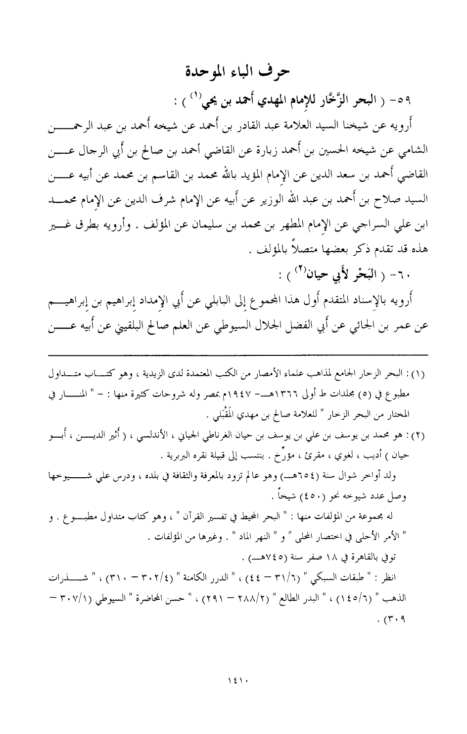 (¬1) البحر الزخار الجامع لمذاهب علماء الأمصار من الكتب المعتمدة لدى الزيدية، وهو كتاب متداول مطبوع في (5) مجلدات أولى 1366هـ- 1974م. ممصر وله شروحات كثيرة منها:-" المنار ني المختار من البحر الزخار " للعلامة صالح بن مهدي المقبلى.