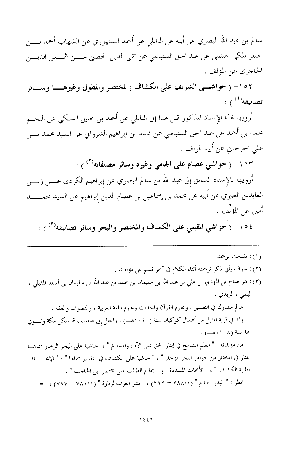 154 - (حواشي المقبلي على الكشاف والمختصر والبحر وسائر تصانيفه (¬3):