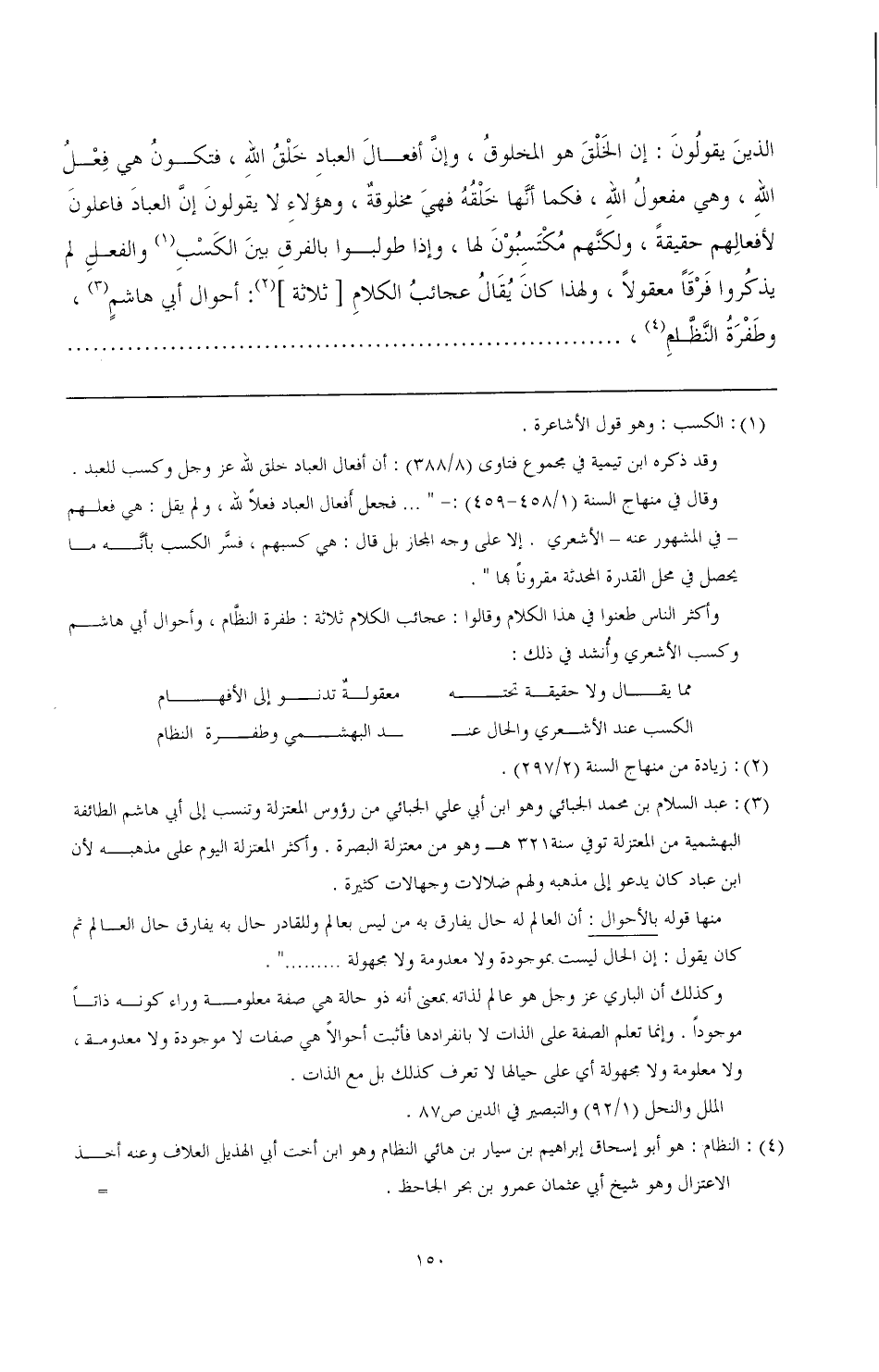 (¬4) النظام: هو أبو إسحاق إبراهيم بن سيار بن هائي النظام وهو ابن أخت أبي الهذيل العلاف وعنه أخذ الاعتزال وهو شيخ أبي عثمان عمرو بن بحر الجاحظ.