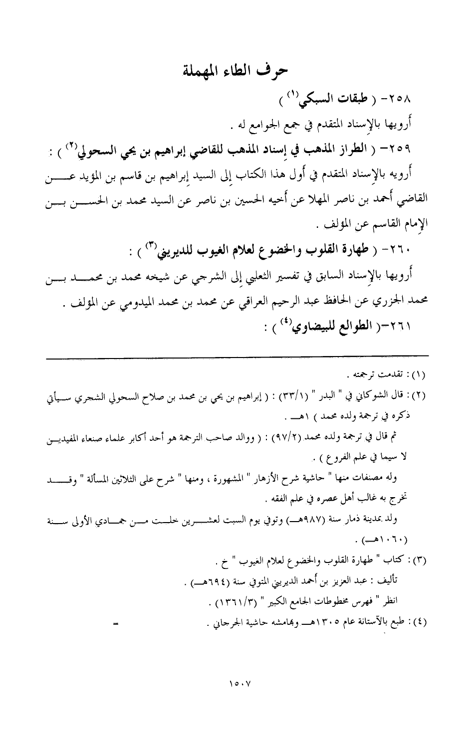 259 - (الطراز المذهب في إسناد المذهب للقاضي إبراهيم بن يحيى السحولي (¬2)): أرويه بالإسناد المتقدم في أول هذا الكتاب إلى السيد إبراهيم بن قاسم بن المؤيد عن القاضي احمد بن ناصر المهلا عن أخيه الحسين بن ناصر عن السيد محمد بن الحسن بن الإمام القاسم عن المؤلف.